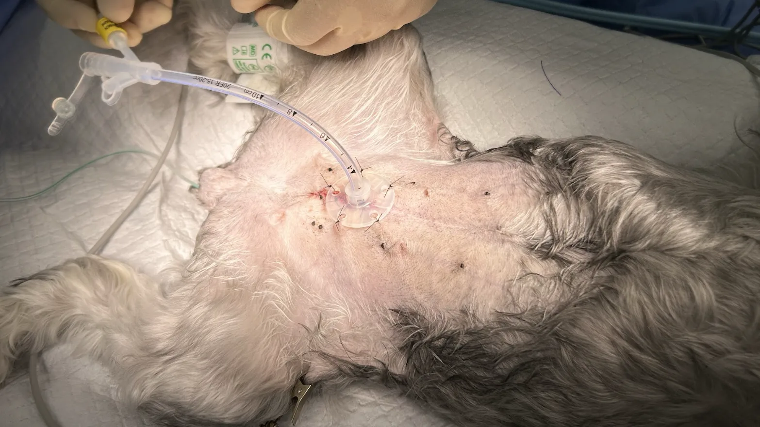 膀胱移行上皮癌では、多くの場合、腫瘍による「尿路閉塞」が命に関わる原因となります。そのため、治療の大きな目的のひとつは、尿路閉塞を起こさせない、あるいはできるだけ遅らせることです。尿路閉塞を防ぐために、外科治療、放射線治療、化学療法などを組み合わせて治療を行います。すでに尿路閉塞が起こっている場合には、まず尿の流れを改善させる処置を優先し、その後に腫瘍に対する治療を検討します。尿路閉塞が起こると、数日以内に命に関わる状態になることもあり、迅速な対応が必要です。そのため、膀胱移行上皮癌と診断された時点で、「将来的に尿路閉塞が起こった場合、どのような治療・対応を選択するのか」を、あらかじめご家族と一緒に考えておくことがとても重要だと考えています。不測の事態が起こった際にも、その子にとって最善の選択ができるよう、事前にしっかりと話し合い、ご家族と一緒に相談しながら治療を進めさせていただきます。