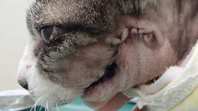 猫の扁平上皮癌では、腫瘍を大きく取り囲むように広範囲の切除が必要となることが多く、手術そのものが負担になる場合があります。しかし、外科治療によって長期的な生存が期待できるケースでは、その負担を乗り越えて手術を行うことが最も効果的な治療となります。一方で、腫瘍の場所や進行状況によっては、手術をしても十分な延命が見込めない場合もあります。そのような場合には、放射線治療や化学療法、痛みや炎症を抑える内科治療などの他の治療方法によって生活の質(QOL)の改善を目指すことが可能です。様々な選択肢をご提示し、その子の状態やご家族のご希望に合わせて、最もふさわしい治療を一緒に相談して決めていきます。