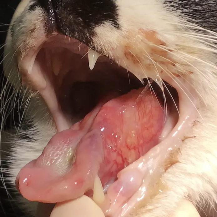 舌発生の場合にも外科摘出は可能ですが、術後の自力採食は不可能となります。