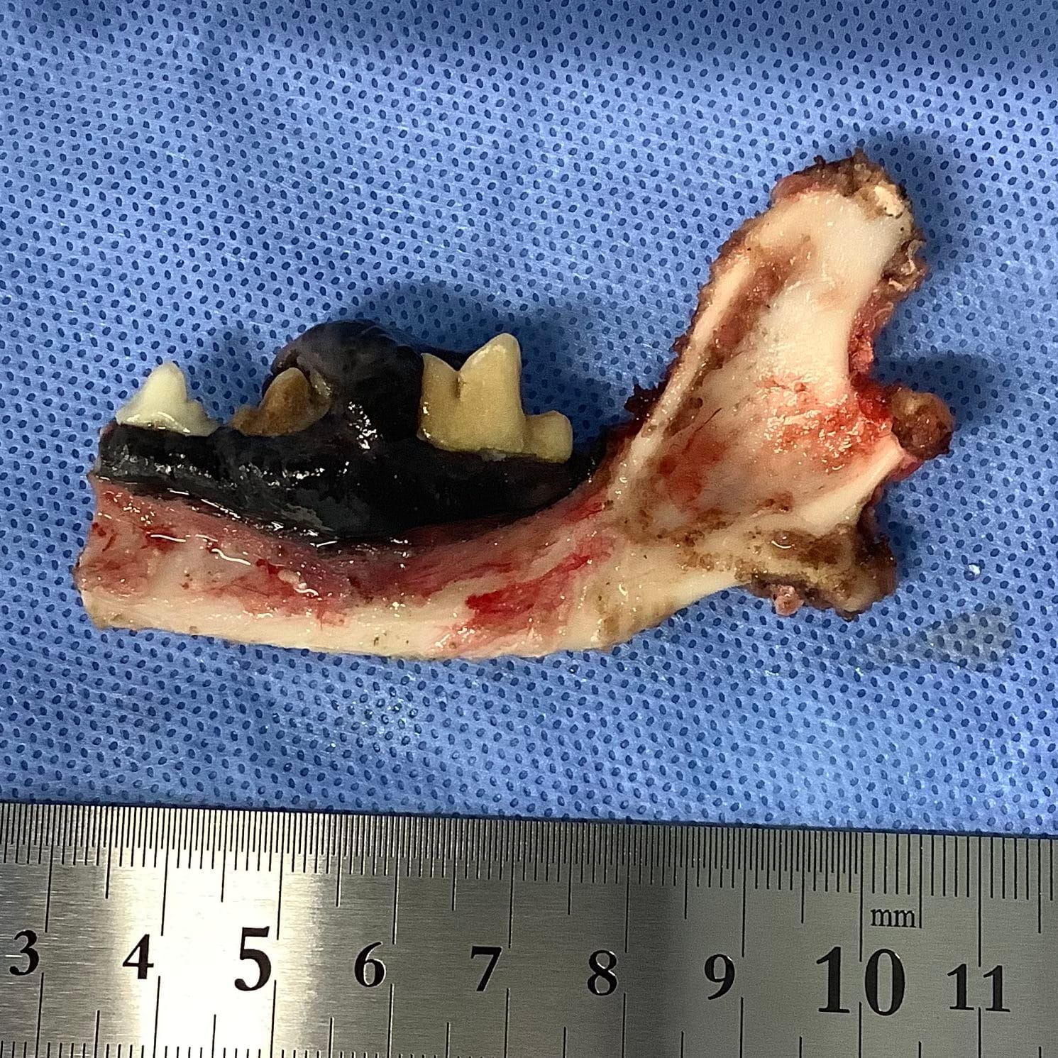広範囲での切除(顎骨を含んだ)が推奨されます。