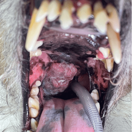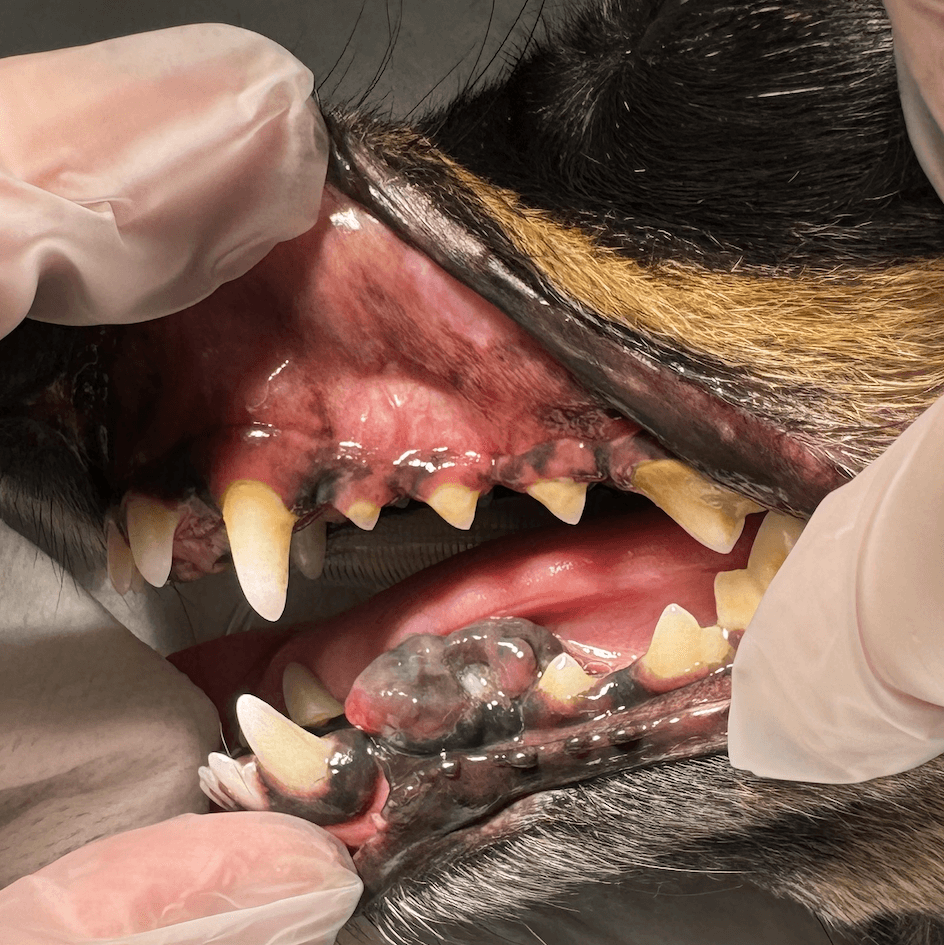 口腔内メラノーマは進行が早く、転移しやすい腫瘍です。少しでも気になる症状があれば、早めの診察をおすすめします。当院では、CT検査や病理組織学的検査による正確な診断と外科治療や免疫療法(Oncept)などを組み合わせた治療が可能です。放射線治療をご希望される場合には適切な施設へご紹介させて頂きます。外科治療が最も有効な治療方法ですが、動物への負担が大きい治療となりますので、動物とご家族に合わせた治療を相談させて頂きます。