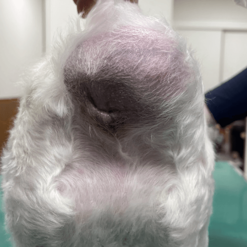 肛門の周囲にできる腫瘍は、犬では比較的よくみられる病気です。多くの場合は良性腫瘍で、適切な外科手術によって完治が期待できます。特に肛門周囲腺腫では、去勢手術を併せて行うことが再発予防のために重要になります。一方で、まれに悪性腫瘍が含まれることもあり、その場合は命に関わる可能性があります。ただし、早い段階で発見し、適切な治療を行うことで、長期間の生存が期待できるケースも少なくありません。肛門周囲の腫瘍は、大きくなるほど悪性の可能性が高くなる傾向があり、「小さいから様子を見よう」としている間に進行してしまうことがあります。そのため、小さい段階での積極的な検査・治療をおすすめしています。