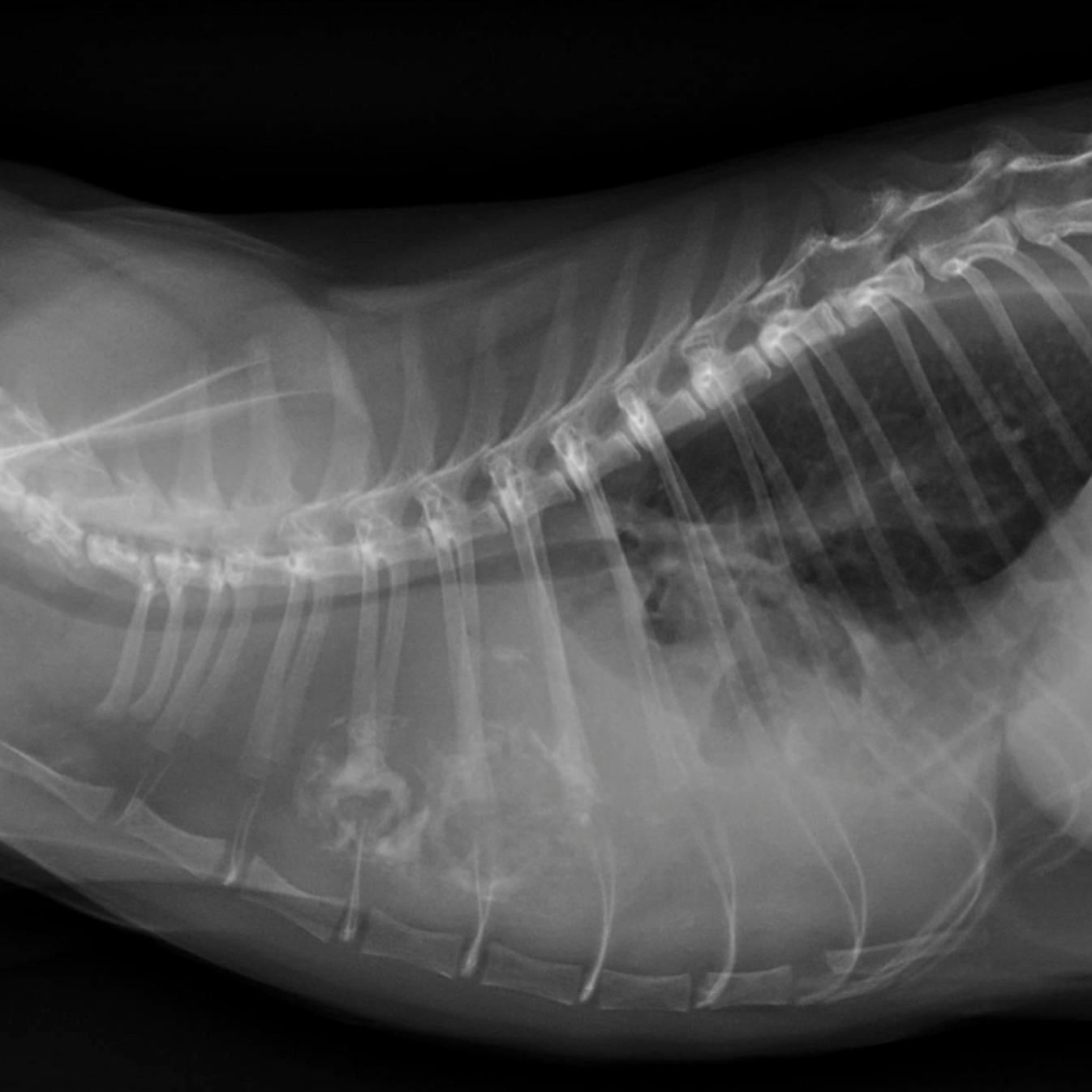 縦隔型リンパ腫は、呼吸状態が悪化した状況で見つかる場合が多いですが、適切な治療によって呼吸状態の改善が期待できる疾患です。治療の主体は化学療法で、身体への負担を伴う治療ではありますが、縦隔型リンパ腫では治療効果が期待できるケースが少なくありません。治療に良好に反応した場合には、症状が安定し、年単位での生存が期待できる症例も報告されています。一方で、FeLV陽性の猫では予後が厳しい傾向があることも事実です。ただしそのような場合であっても、治療によって呼吸状態や全身状態が改善し、生活の質(QOL)の向上が得られる可能性があります。治療を行うかどうか、どの程度の治療を目指すかは、その子の状態やご家族のお考えによって最適解が異なります。治療のメリット・デメリットを丁寧にお伝えしながら、その子とご家族にとって納得できる治療選択肢を一緒に考えていきたいと考えています。